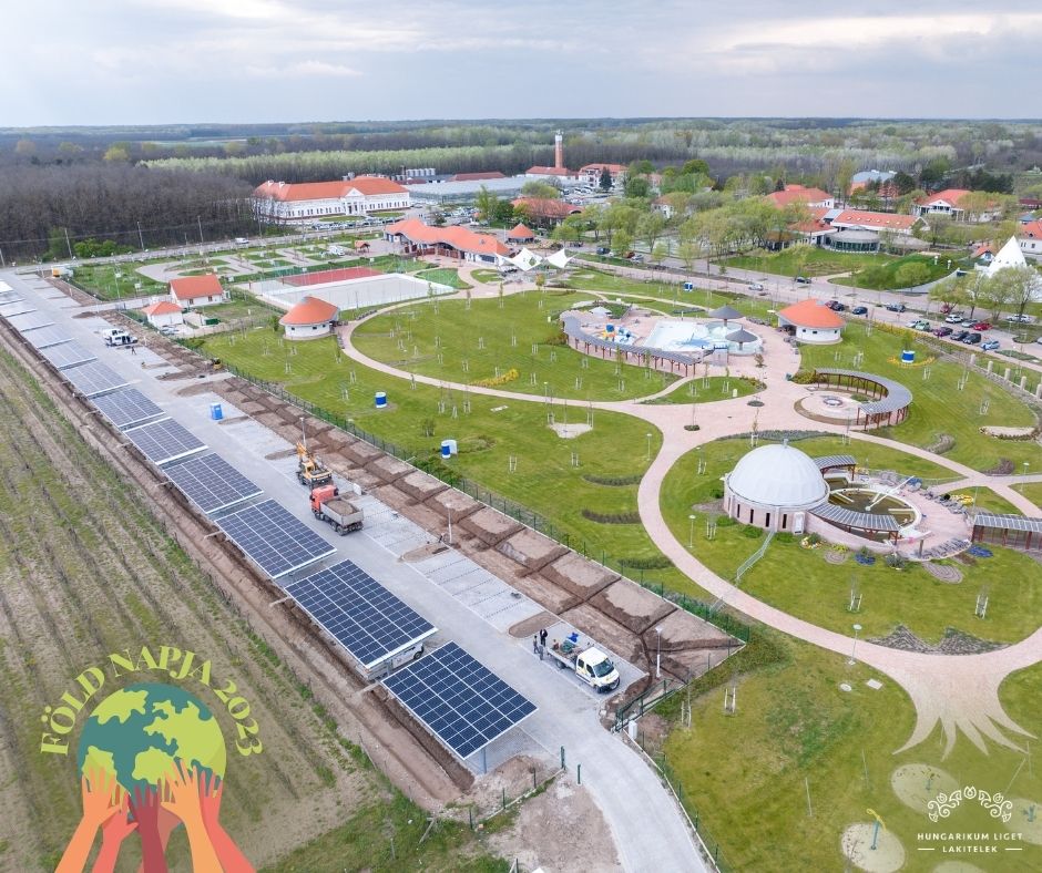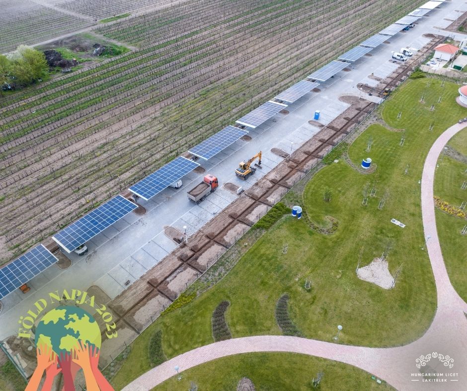 Tizedik nap: Parkolóhelyeink bővítésére új parkoló épül a Gabriella Gyógy- és Strandfürdő mellett. A parkoló féltetőin 555 db 450W napelem kerül kihelyezésre, amelyek majd 249kW energiát termelnek.