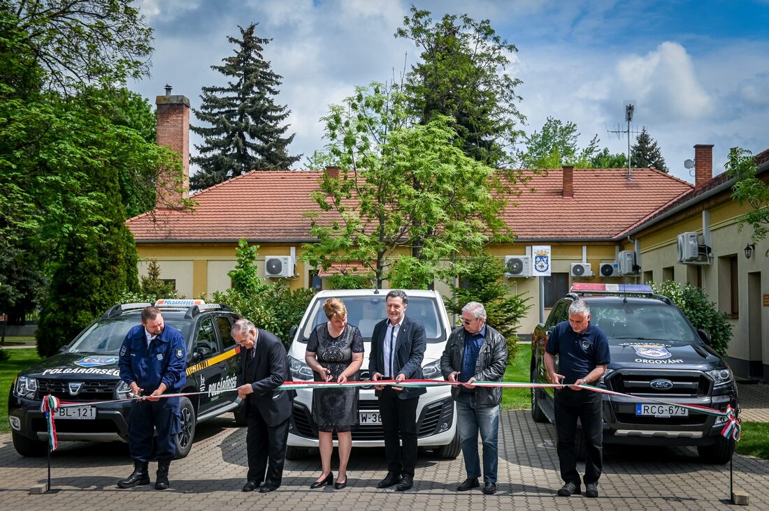 Lezsák Sándor elmondta, hogy ő maga is polgárőr Lakiteleken, hiszen szolgálnunk kell a településünk nyugalmáért. Egy egészséges emberben úgy dobog a hazaszeretet, mint Petőfi verseiben, és a nyugalom, a szeretet, a család, jó érzés iránti vágy is, hangsúlyozta. A természeti és politikai katasztrófák sújtotta világban a mi településeink kell, hogy adjanak biztonságot, közösséget, és ezt szolgálják a most átadott gépkocsik is, mondta Lezsák Sándor. Utalt arra, hogy mióta a térség országgyűlési képviselőjeként dolgozik, többször megfogalmazta, hogy a gátőrök, halőrök, vadőrök, természetőrök, polgárőrök, mezőőrök, rendőrök olyan biztonságban kell éljenek, amilyen biztonságot elvárunk a településen. Végül köszönetet mondott Rideg Lászlónak, aki a választókerület sorsát értő módon figyeli és segíti. Az óvodások műsora, valamint az ünnepélyes szalagátvágás után dr. Czár János plébános áldotta meg az átadott fejlesztéseket.