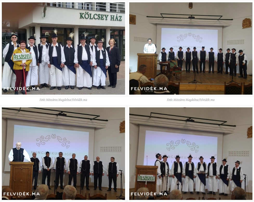 Másnap délelőtt került sor a Kölcsey-ház dísztermében a Kárpát-medencei Férfikórusok Találkozójára. A résztvevők fellépőruhája is elárulta, hogy honnét jöttek, főleg az erdélyi csoportoké. A Gyimesvölgye Férfikórus csángó viseletben volt, vagyis fehér vászonnadrág, bőujjú hímzett mandzsettás ing, s a jellegzetes „mejjes”, a báránybőrből készült mellény, melyet oldalt és a vállon kapcsolnak össze. Fejükön a kis fekete pörgekalap. A marosszékiek posztónadrágot, fehér inget, fekete mellényt, fekete kalapot és csizmát viseltek. A gyenesdiási dalosok fekete nadrág, fehér ing és fekete mellény, kalap öltözetben voltak. A vajdaságiak hasonlóképpen öltöztek, kalap nélkül. A felsőszeli dalosok a helyi népviselet darabjait öltötték magukra, fehér, ún. „aratógatya”, fehér paraszting, fekete mellény, kék kötény, melyet oldalra tűzve hordtak elődeink. Fejükön árvalányhajjal díszített kalap.