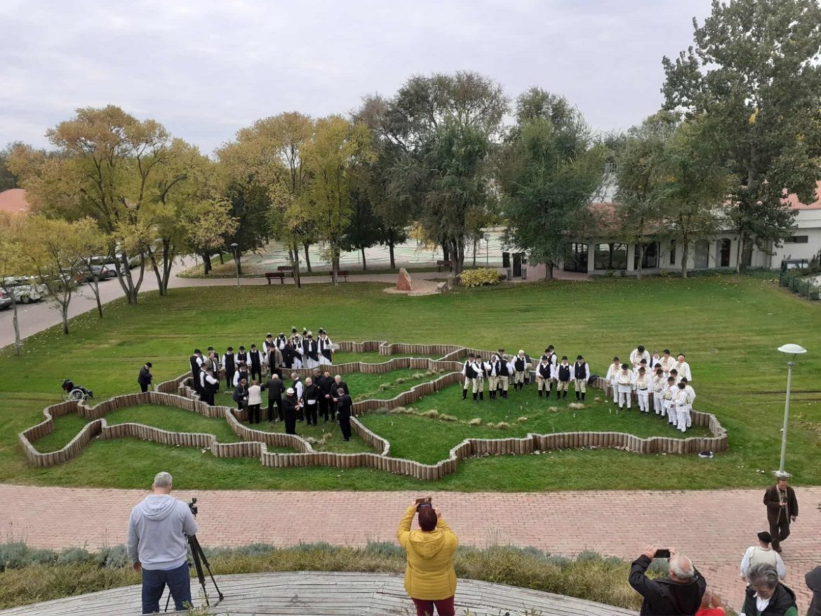 Ezután a Hungarikum Ligetben a történelmi Magyarország vaktérképében elhelyezkedtek a kórusok, mindegyik oda, ahonnét jött. Egy erdélyi népdallal és a Szózat közös éneklésével tettek pontot az énekkarok a Kárpát-medencei Férfikórusok Találkozója végére, mely a szervezők szerint az első próbálkozás volt, de lesz folytatása is.