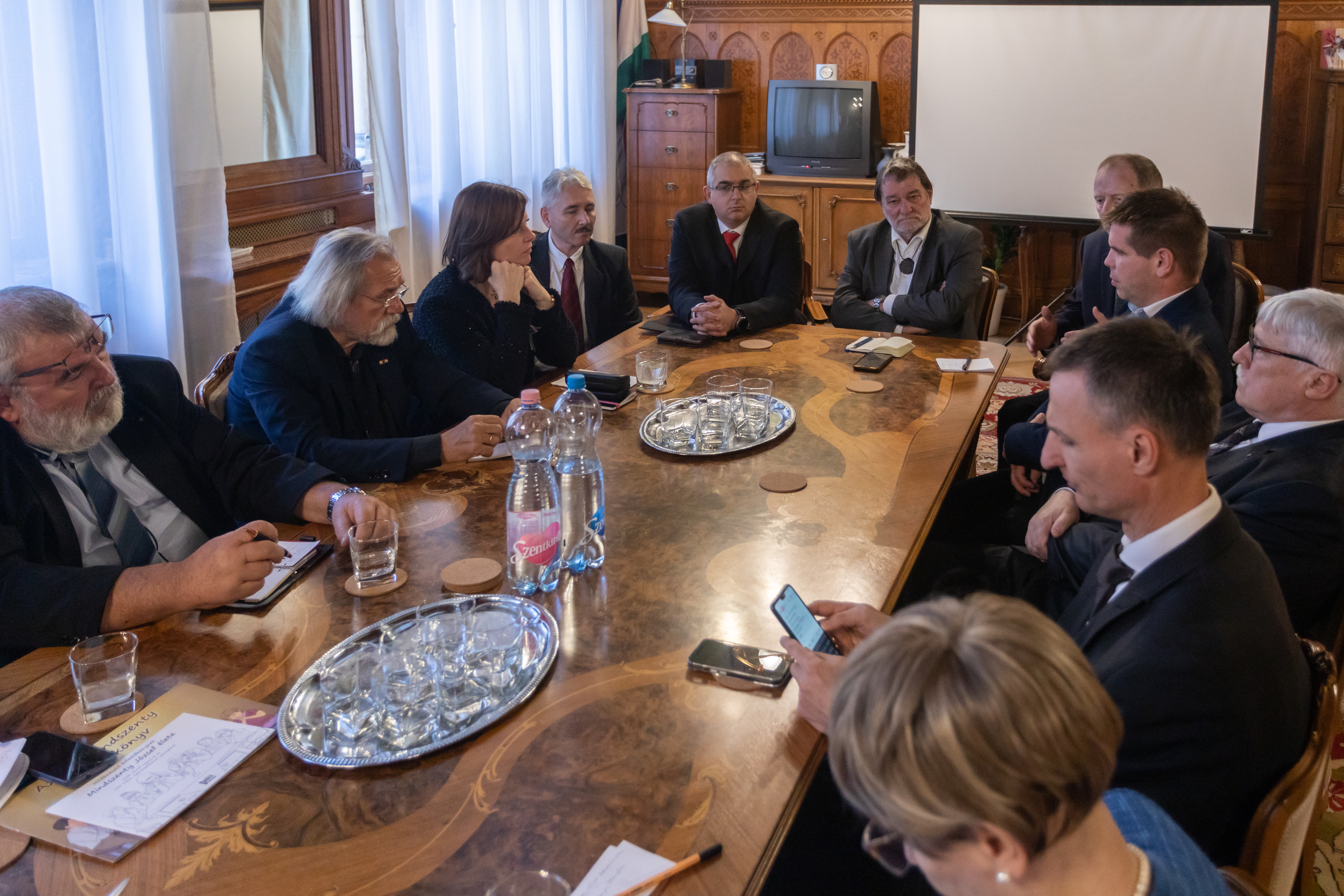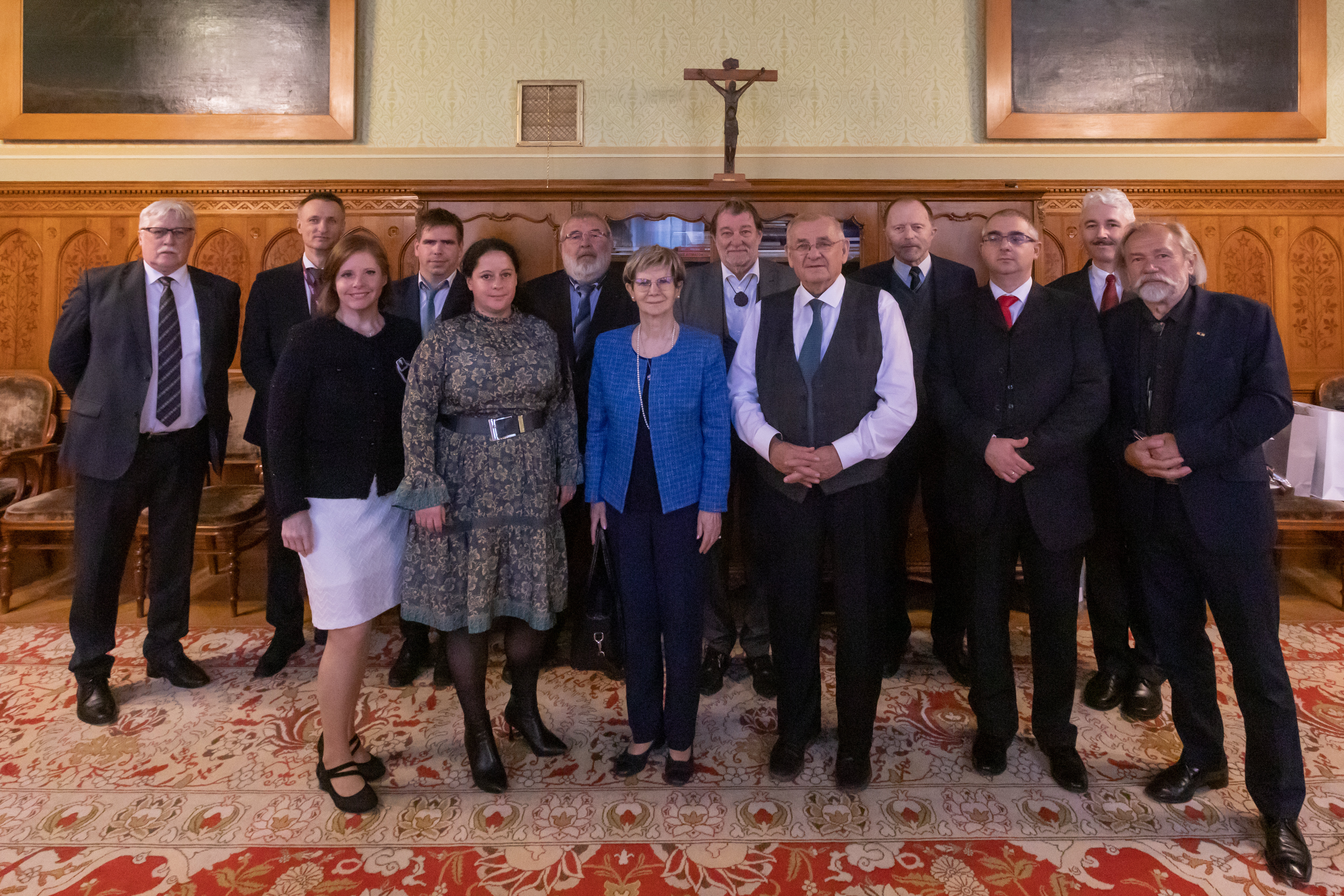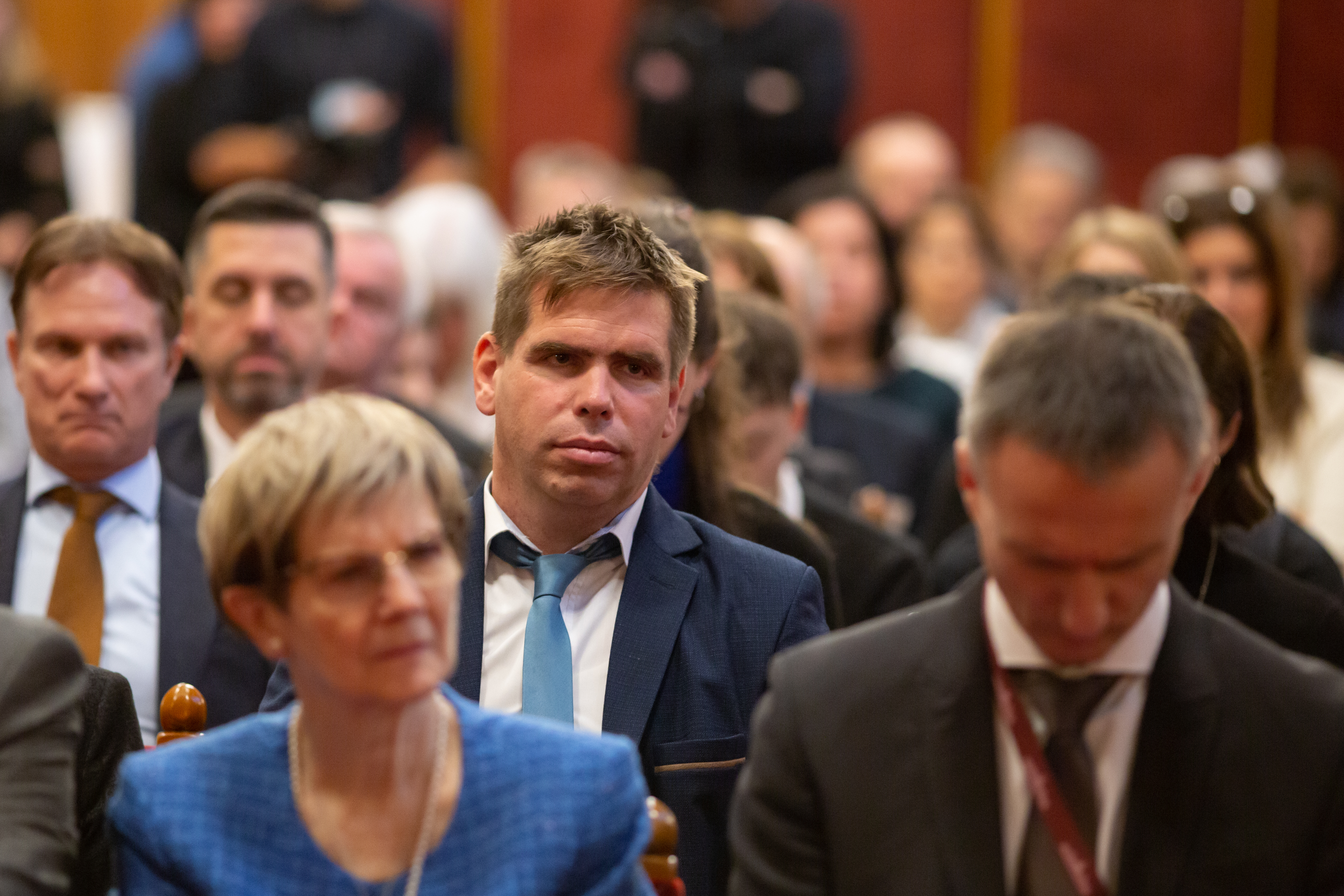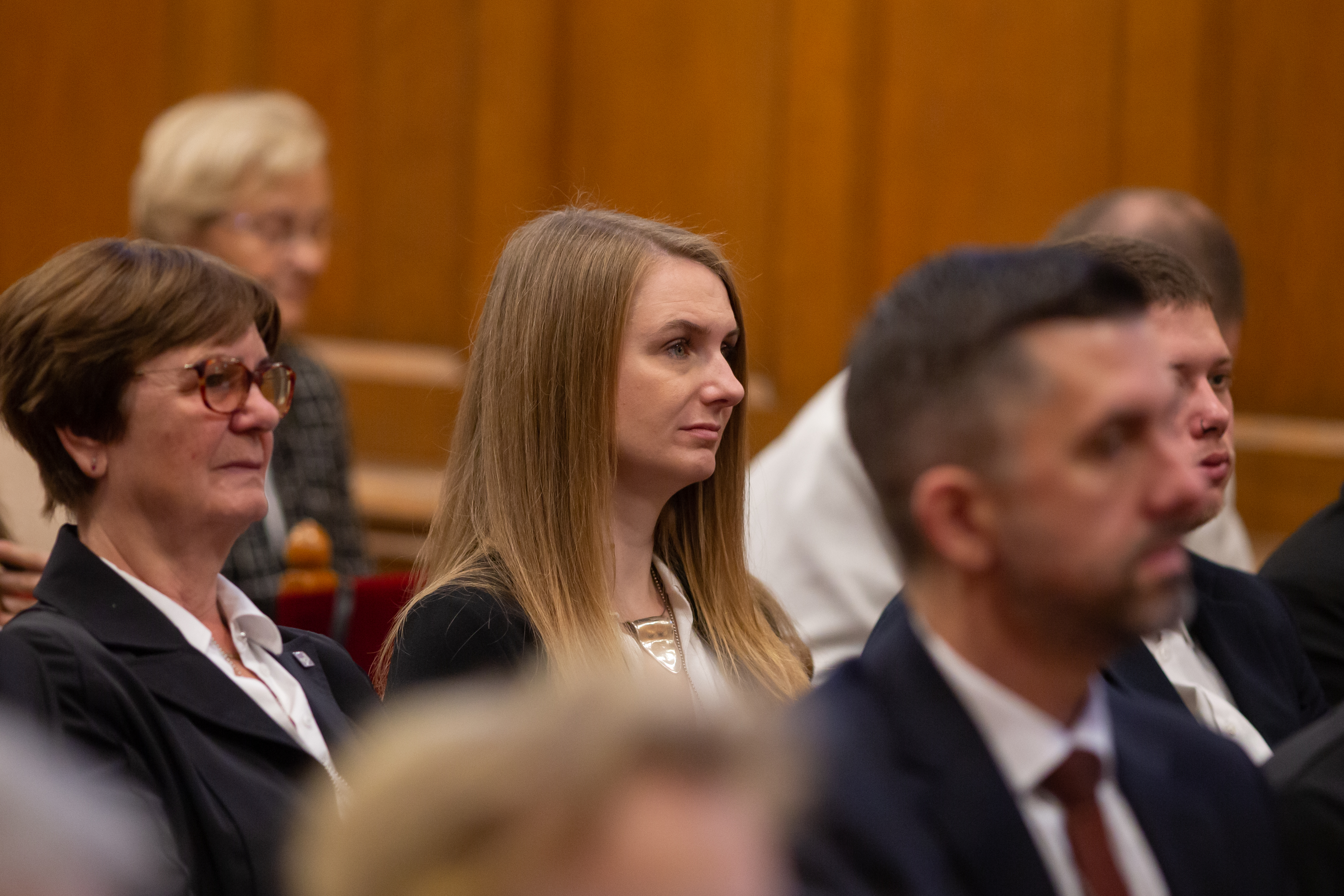 Az emlékérmek átadása előtt a Mindszenty Társaság képviselői megkoszorúzták az Országházban a bíboros emléktábláját, amely az 1956. november 3-i eseménynek állít emléket, amikor a hercegprímás szózatot intézett a nemzethez.