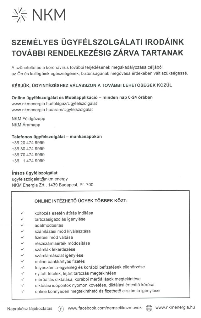 Személyes ügyfélszolgálati irodáink további rendelkezésig zárva tartanak