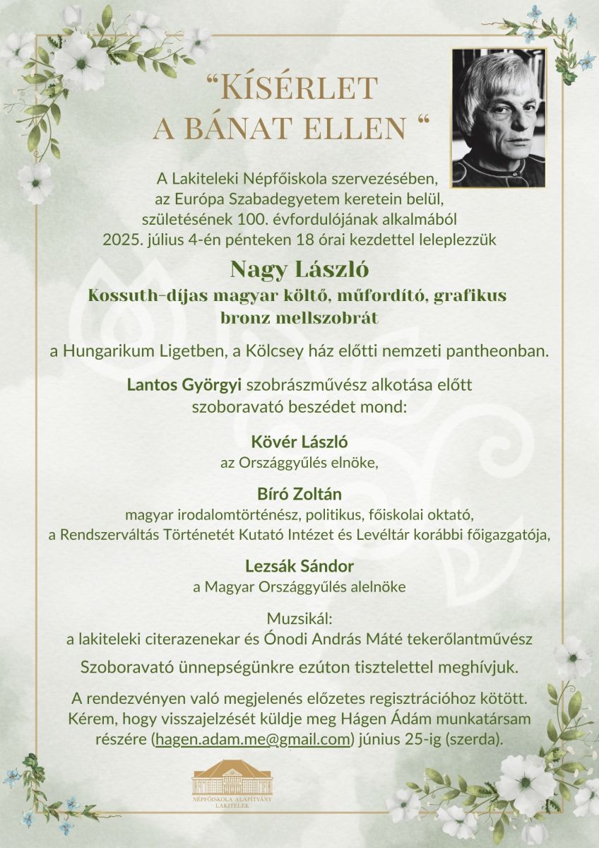 Szoboravatás - Nagy László, Kossuth-díjas magyar költő, műfordító, grafikus