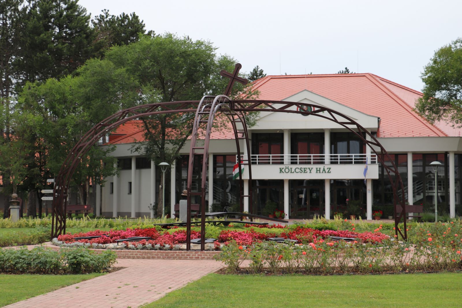 A Népfőiskola központi terén elhelyezkedő virágórát tavasztól őszig szezonális növények színesítik. Az óra fölé elhelyezésre került a Szent Korona is, megjelenítve történelmünk egyik legfontosabb jelképét.
