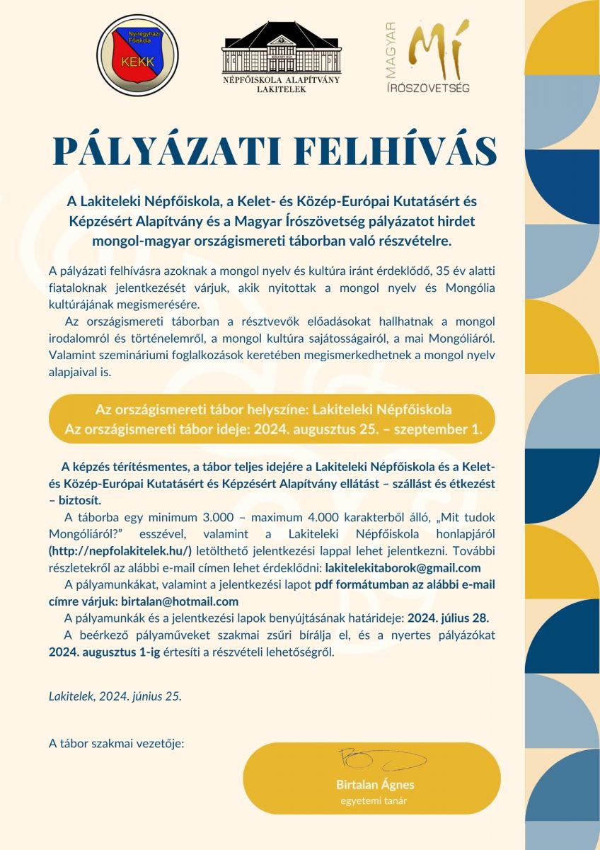 Mongol-magyar országismereti tábor - 2024. augusztus 25. - szeptember 1. (meghosszabbodott a jelentkezési határidő)