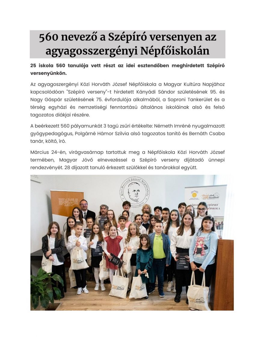560 nevező a Szépíró versenyen az agyagosszergényi Népfőiskolán
