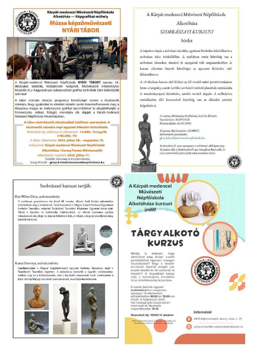 További információért látogassanak el a kápolnásnyéki Kárpát-medencei Művészeti Népfőiskola Alapítvány honlapjára.