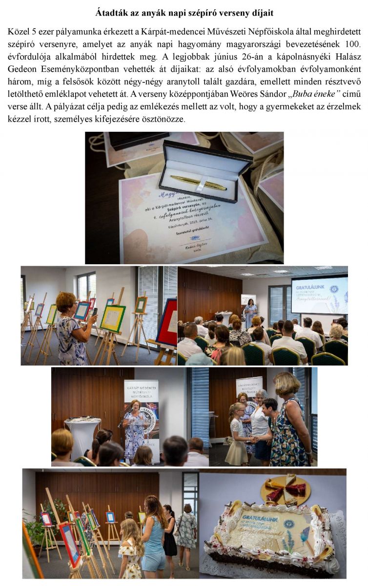 Átadták az anyák napi szépíró verseny díjait
