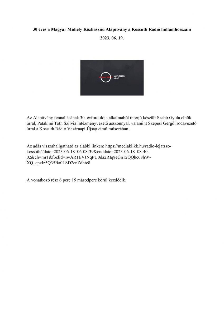 Az Alapítvány fennállásának 30. évfordulója alkalmából megjelentünk a Kossuth Rádióban