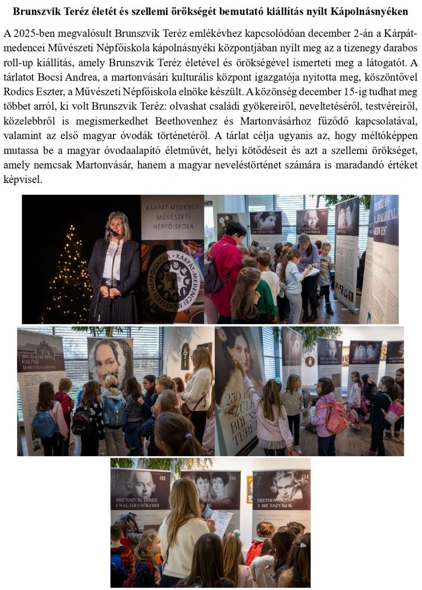 Brunszvik Teréz életét és szellemi örökségét bemutató kiállítás nyílt Kápolnásnyéken