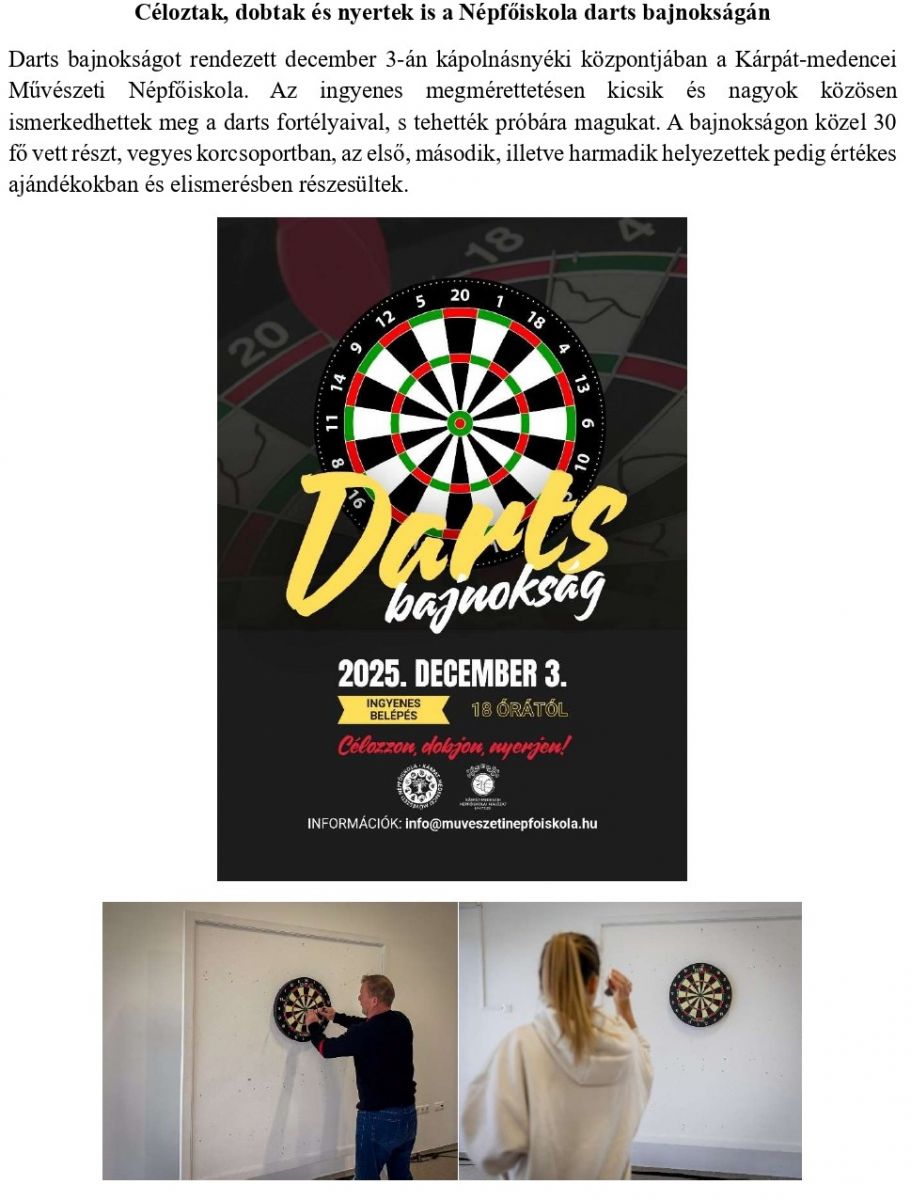 Céloztak, dobtak és nyertek is a Népfőiskola darts bajnokságán