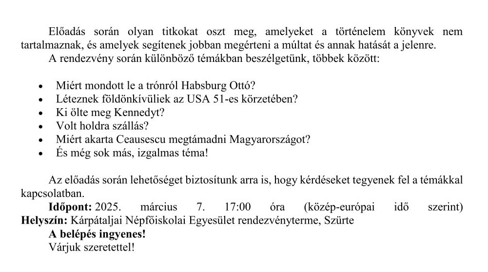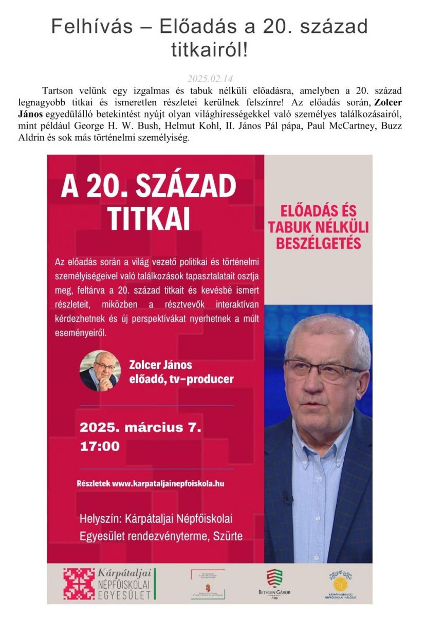 Felhívás – Előadás a 20. század titkairól!