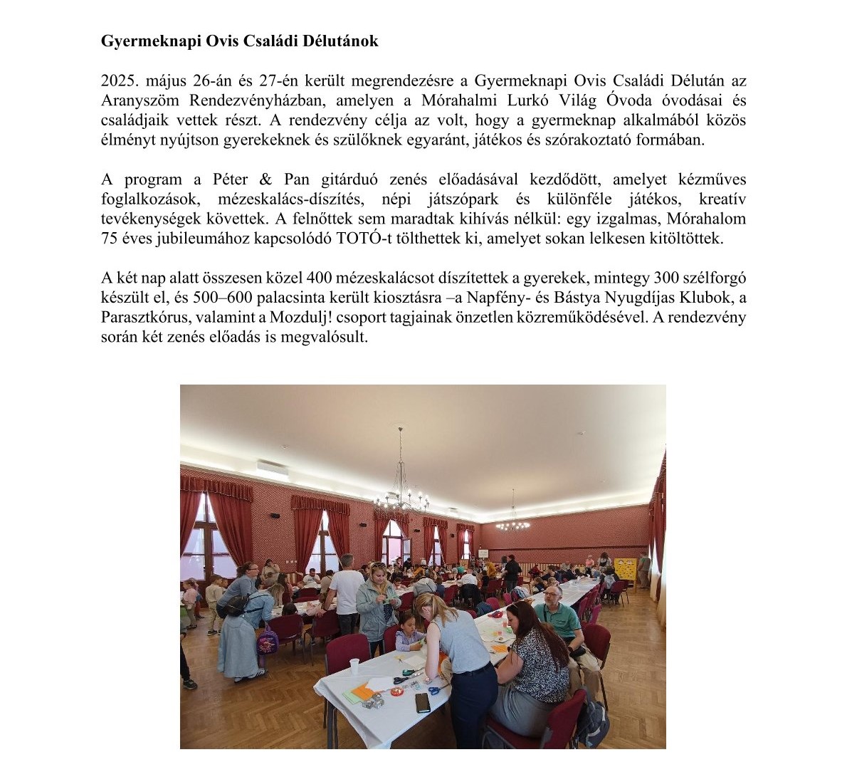 Gyermeknapi Ovis Családi Délutánok Mórahalmon
