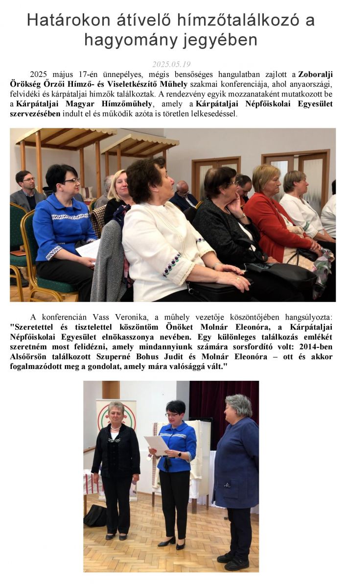 Határokon átívelő hímzőtalálkozó a hagyomány jegyében