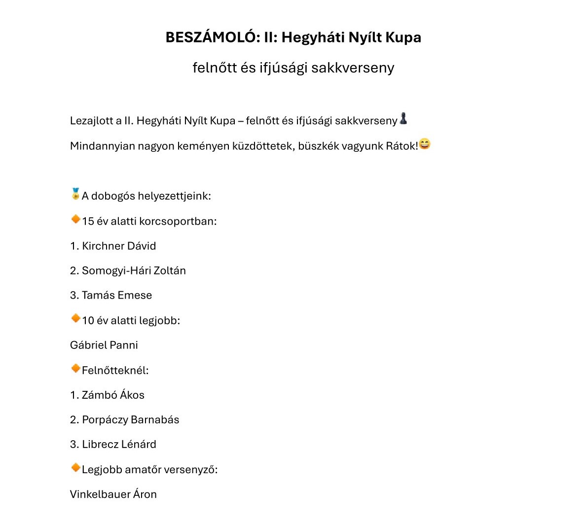 II. Hegyháti Nyílt Kupa Sakkverseny