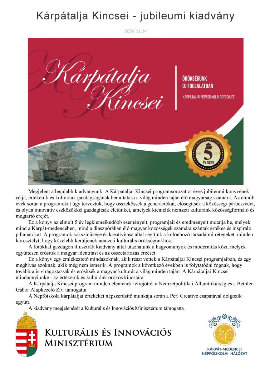 Kárpátalja Kincsei - jubileumi kiadvány
