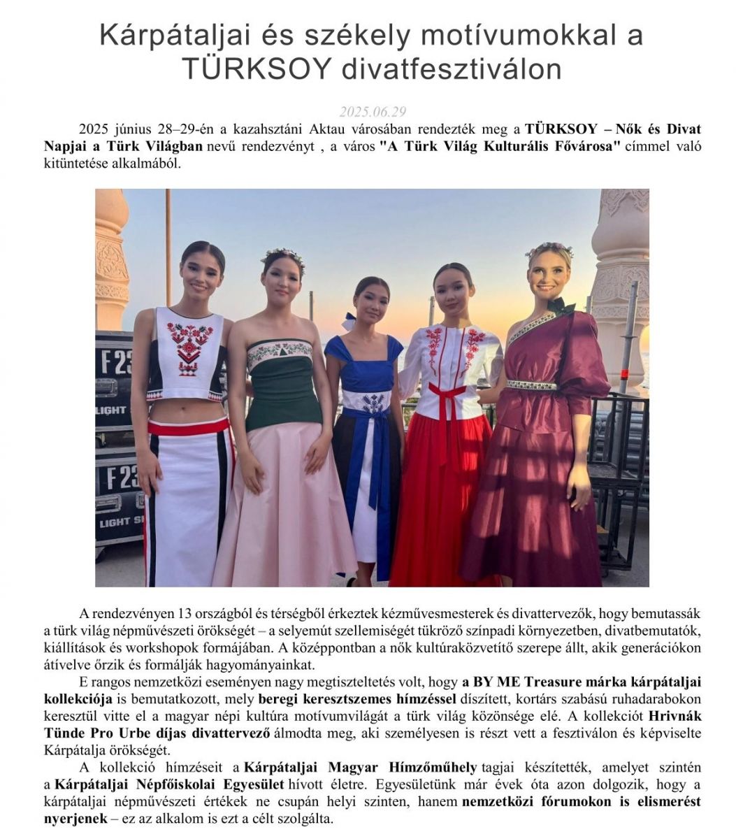 Kárpátaljai és székely motívumokkal a TÜRKSOY divatfesztiválon
