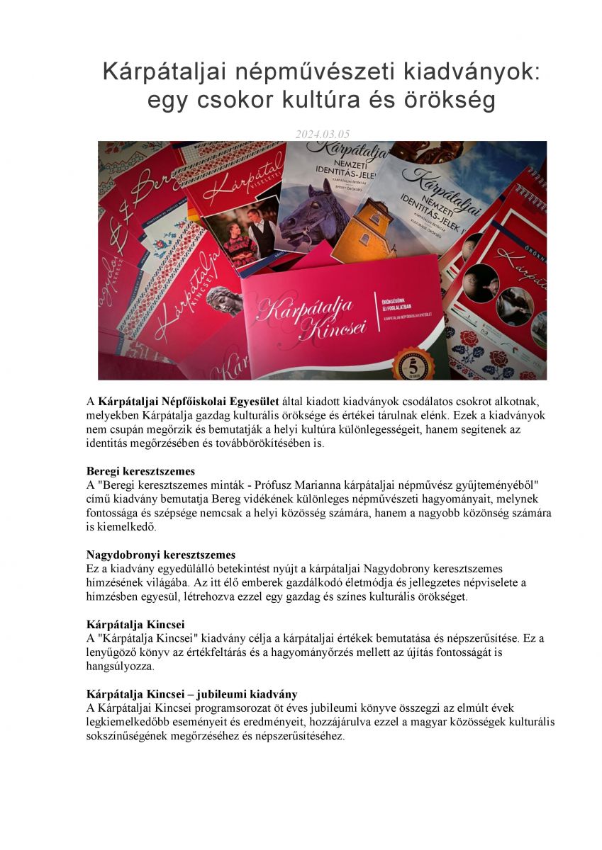 Kárpátaljai népművészeti kiadványok: egy csokor kultúra és örökség