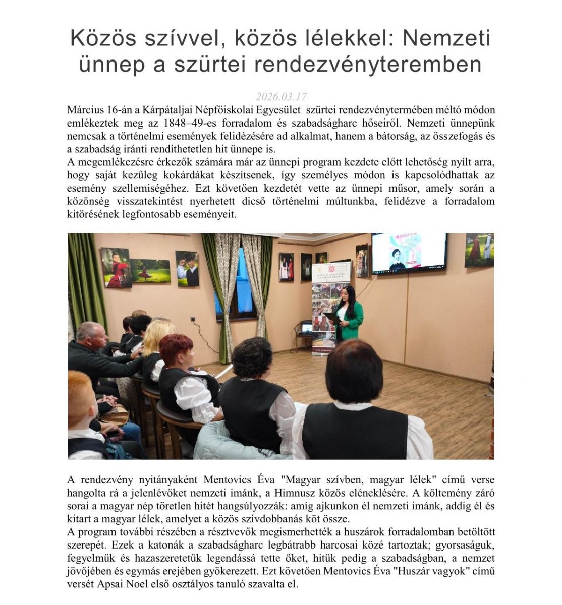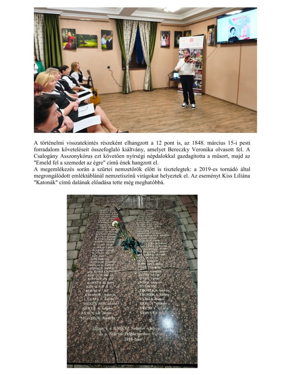 Közös szívvel, közös lélekkel: Nemzeti ünnep a szürtei rendezvényteremben