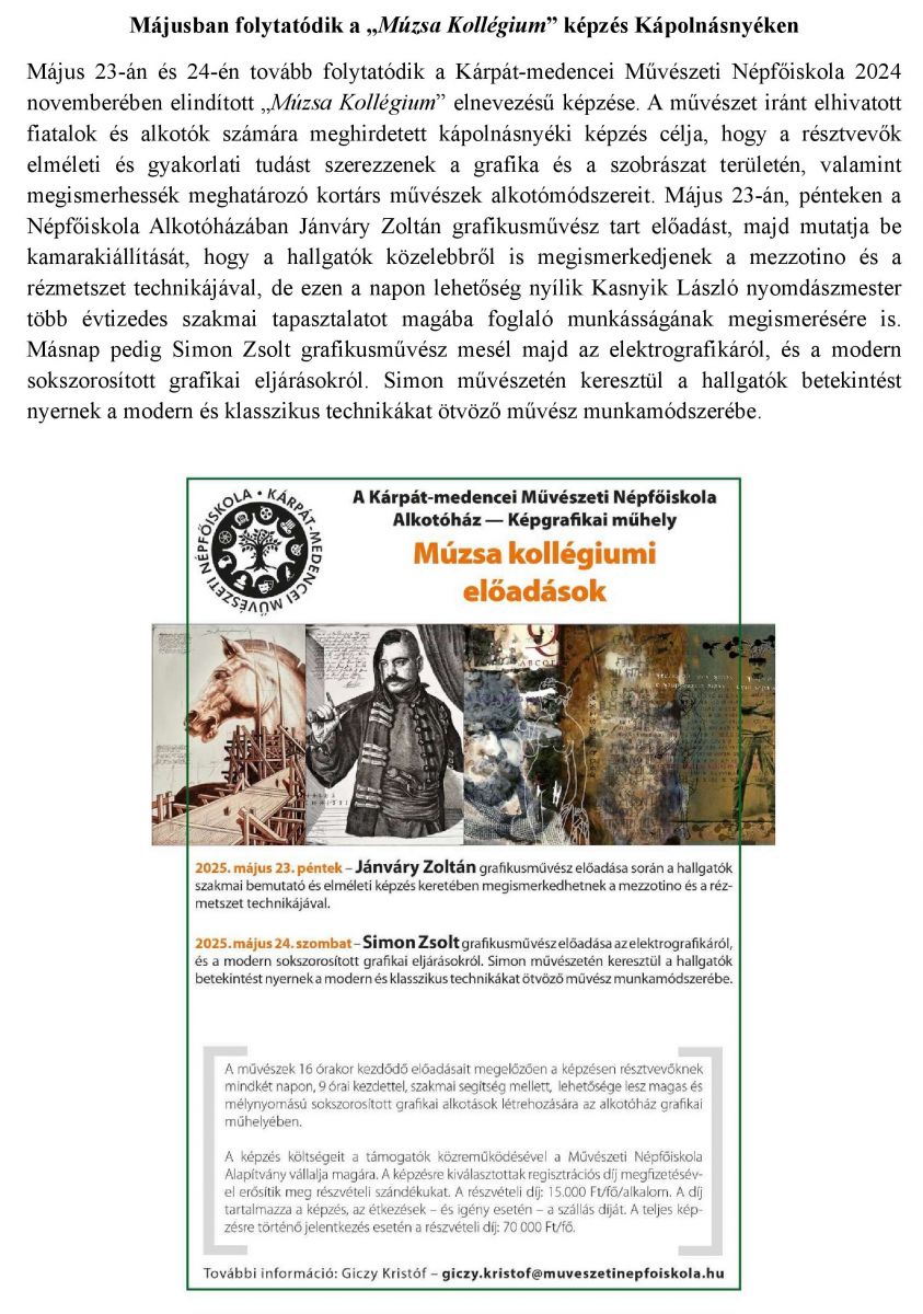 Májusban folytatódik a „Múzsa Kollégium” képzés Kápolnásnyéken