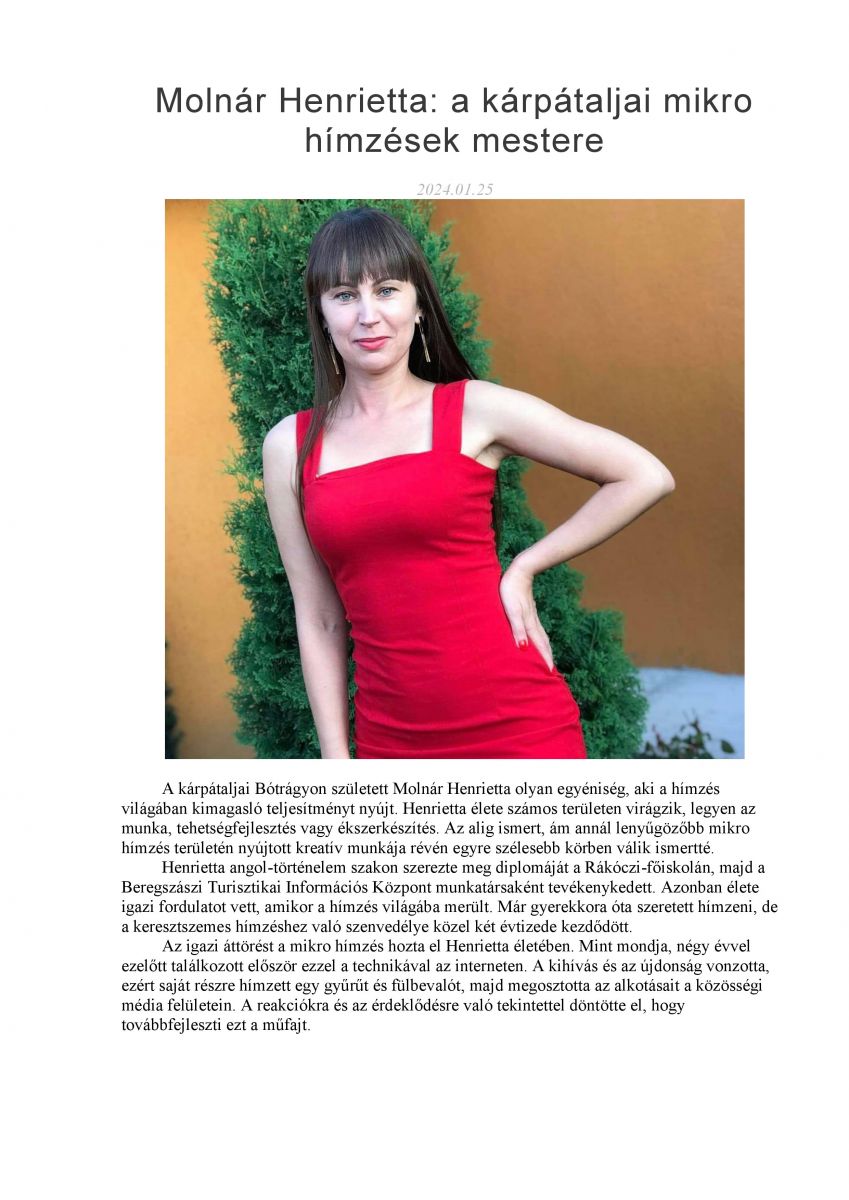 Molnár Henrietta: a kárpátaljai mikro hímzések mestere