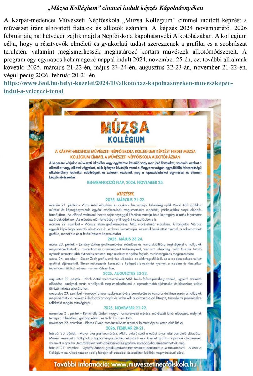 „Múzsa Kollégium” címmel indult képzés Kápolnásnyéken