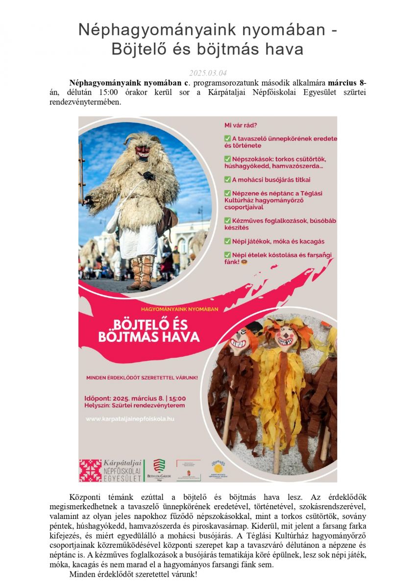 Néphagyományaink nyomában - Böjtelő és böjtmás hava