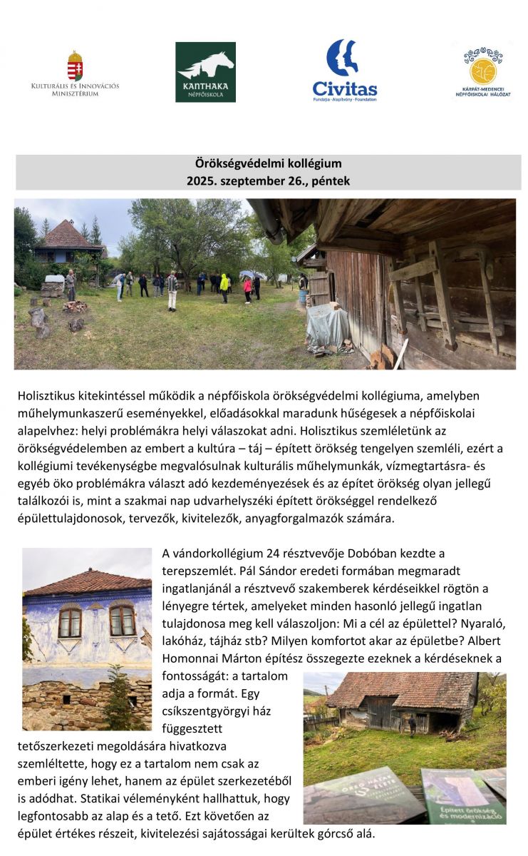 További információért látogassanak el a székelyderzsi Kanthaka Népfőiskola weboldalára.