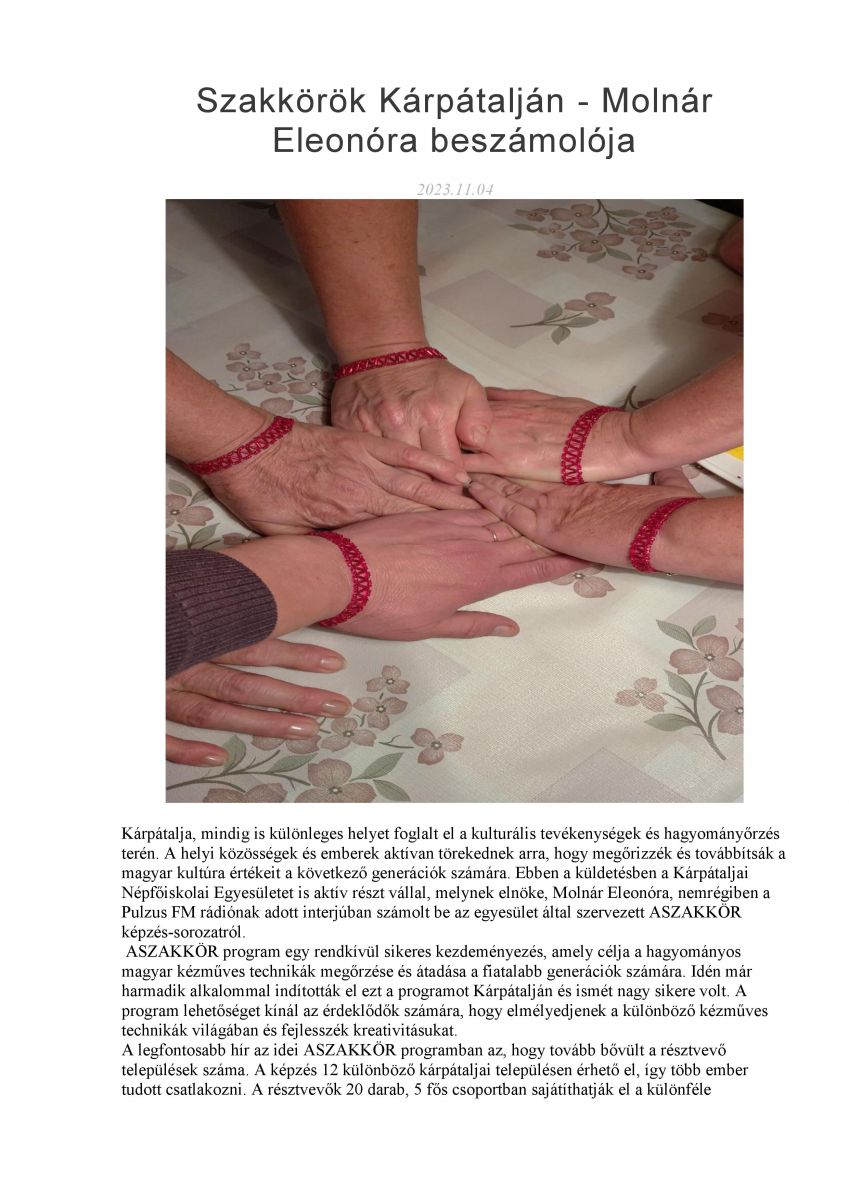 Szakkörök Kárpátalján - Molnár Eleonóra beszámolója