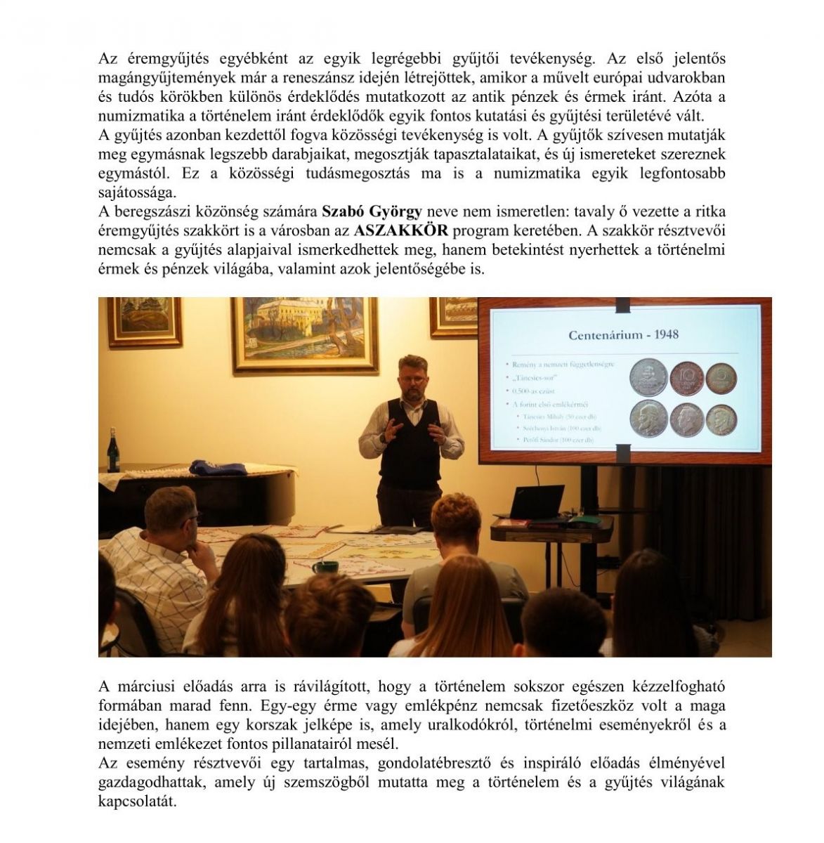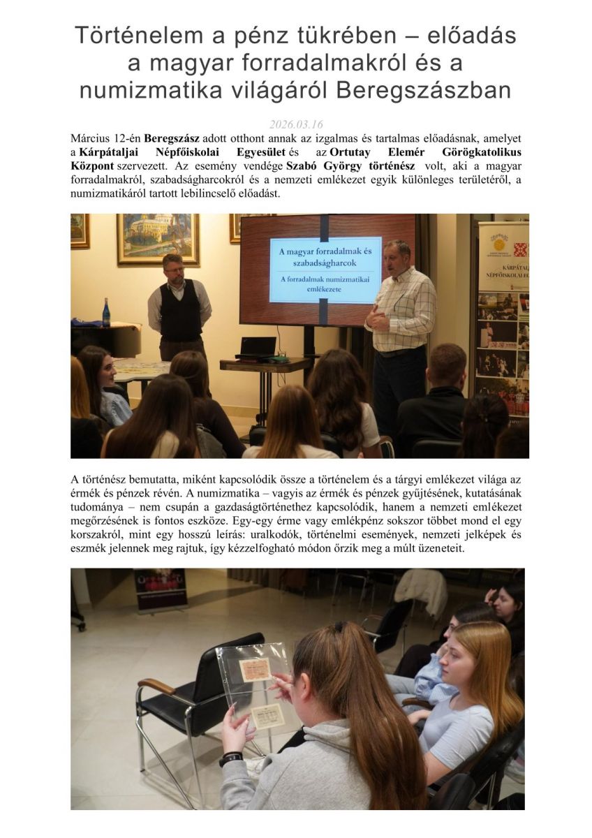 Történelem a pénz tükrében – előadás a magyar forradalmakról és a numizmatika világáról Beregszászban