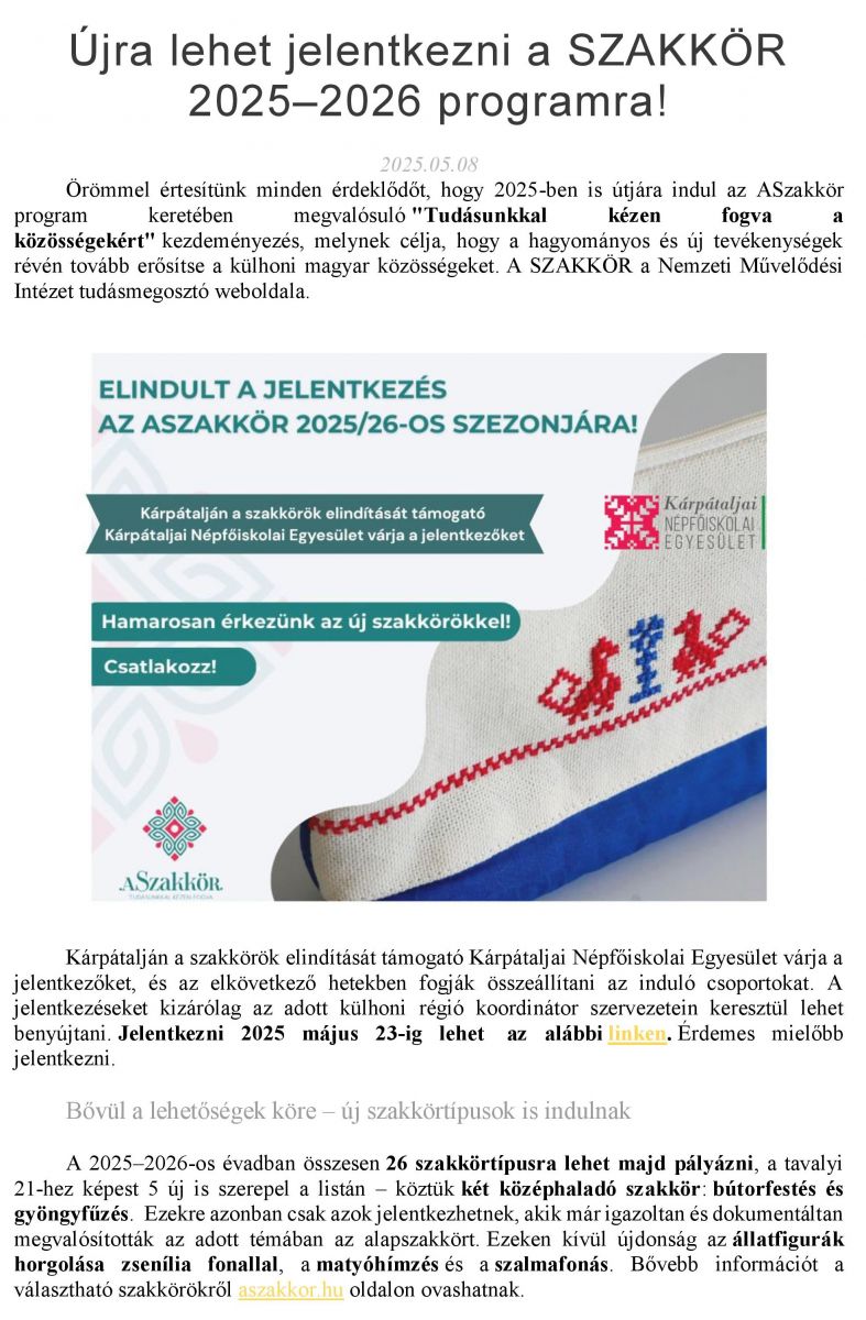 Újra lehet jelentkezni a SZAKKÖR 2025–2026 programra!