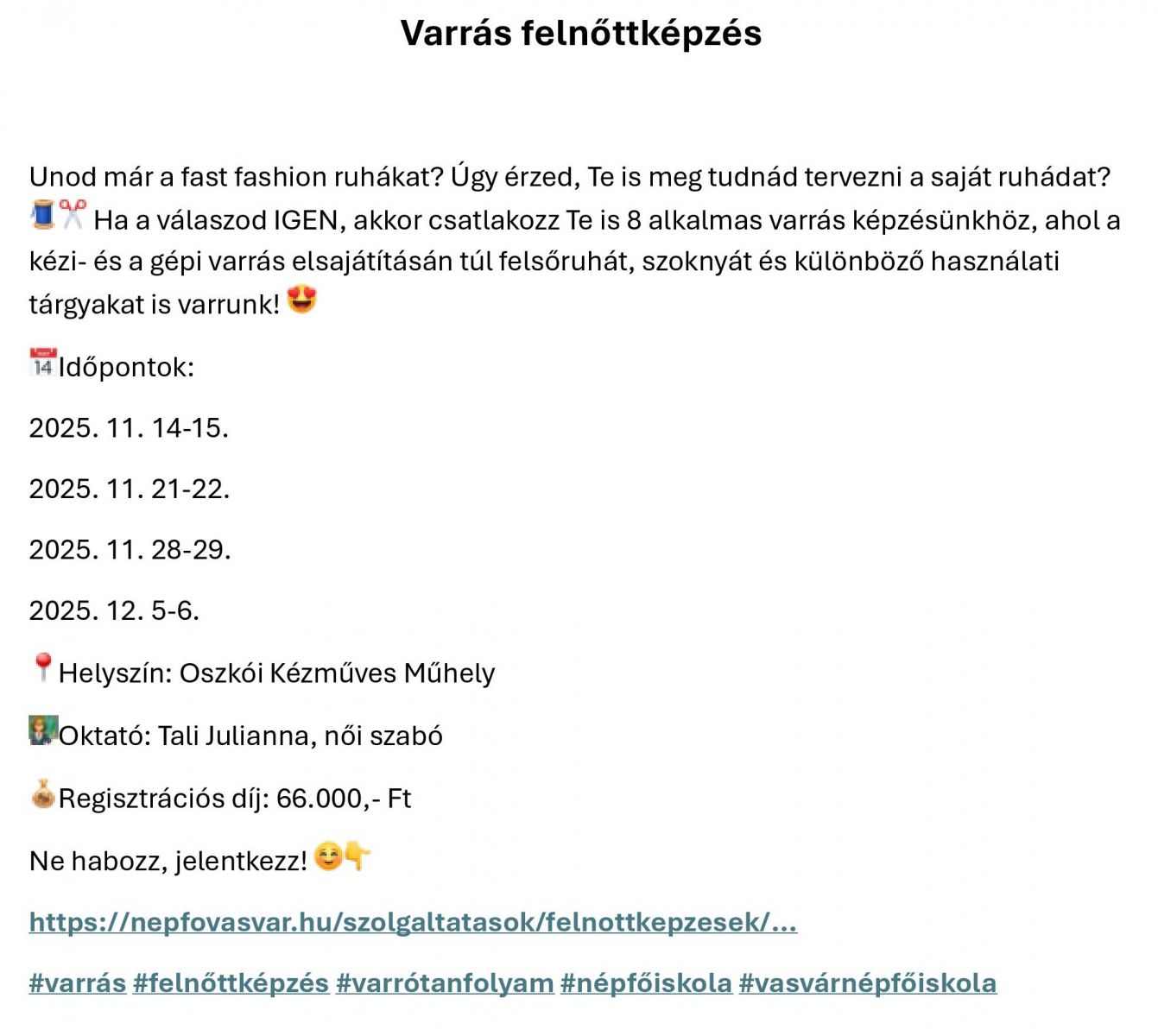 További információért látogassanak el a Vasvári Nagytérségi Népfőiskoláért Alapítvány weboldalára.