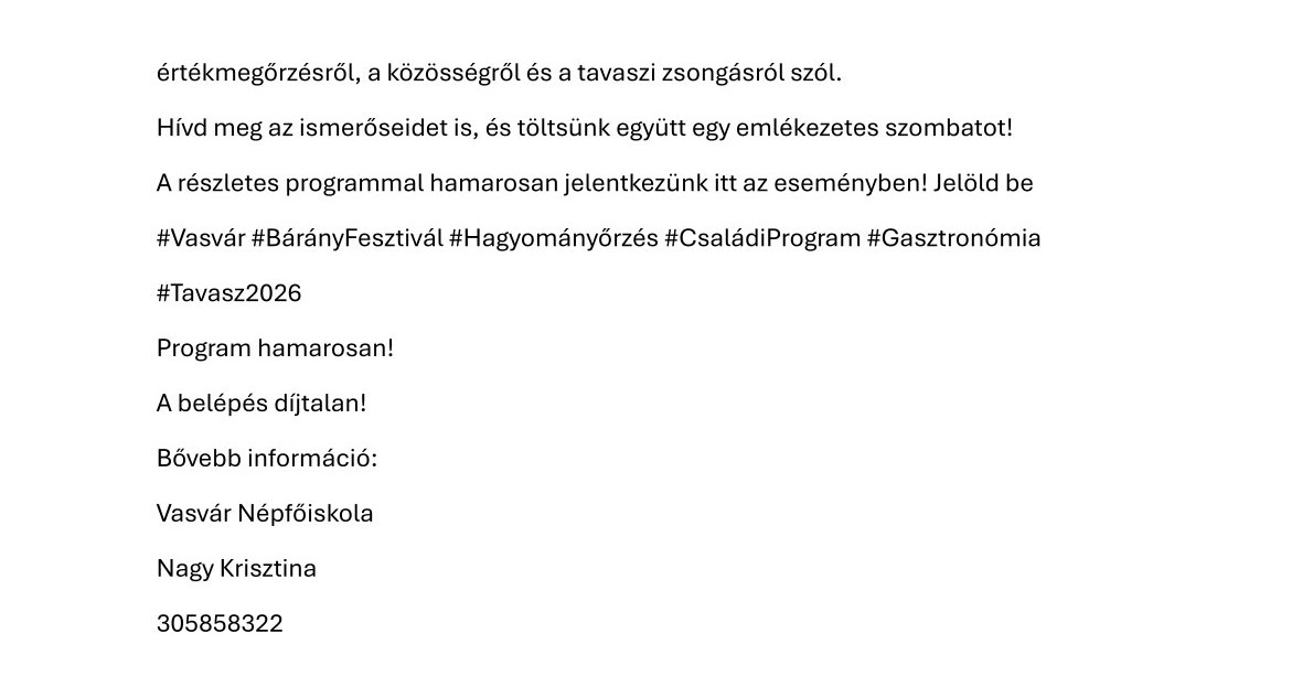 További információért látogassanak el a Vasvári Nagytérségi Népfőiskoláért Alapítvány weboldalára.