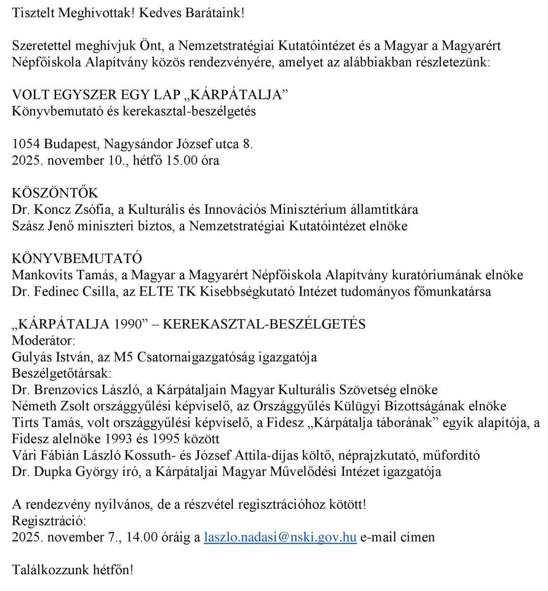 VOLT EGYSZER EGY LAP „KÁRPÁTALJA” Könyvbemutató és kerekasztal-beszélgetés