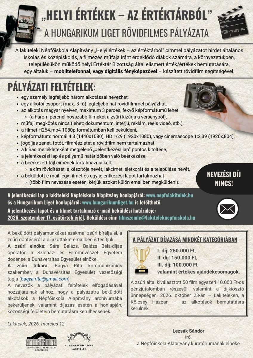 „HELYI ÉRTÉKEK – AZ ÉRTÉKTÁRBÓL” - a Hungarikum Liget rövidfilmes pályázata
