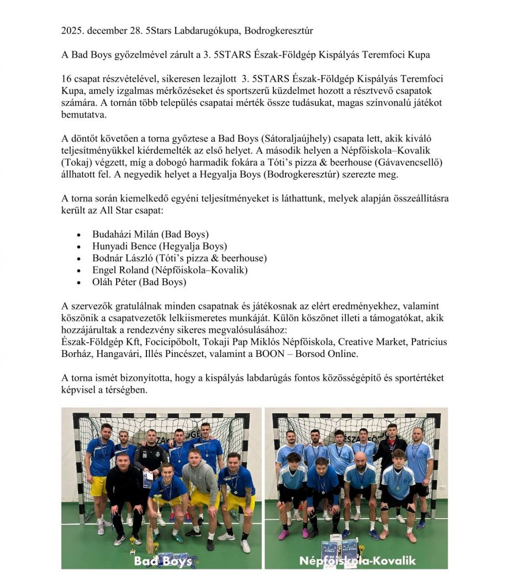 2025. december 28. 5Stars Labdarugókupa, Bodrogkeresztúr