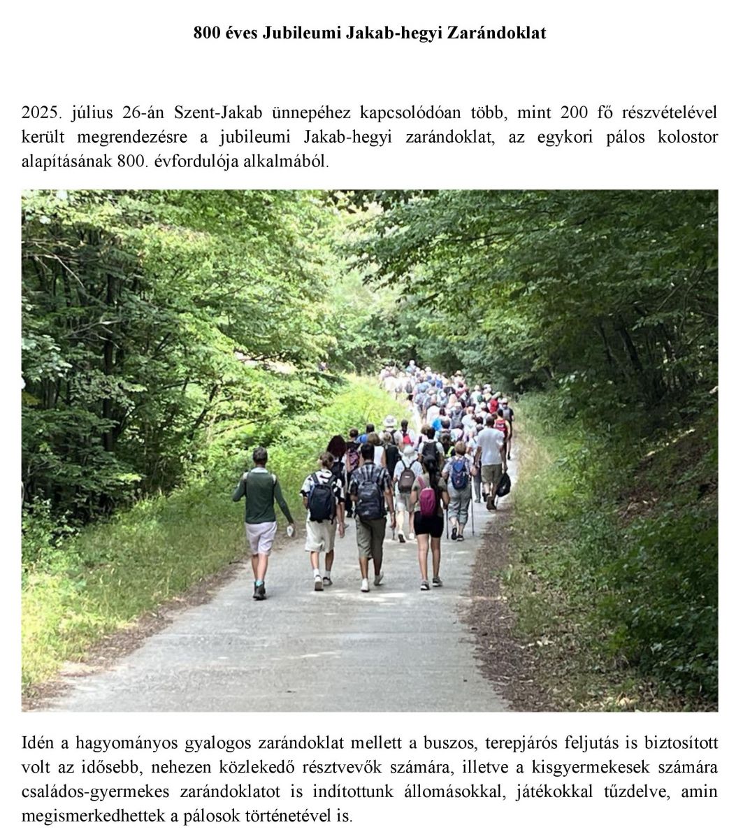 800 éves Jubileumi Jakab-hegyi Zarándoklat