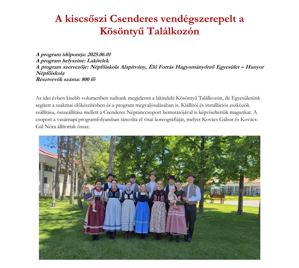 A Csenderes is fellépett a Kösöntyű Találkozón