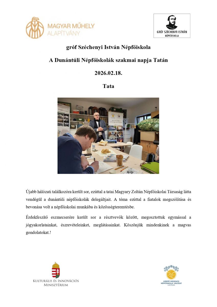 A dunántúli népfőiskolák szakmai napján jártunk Tatán