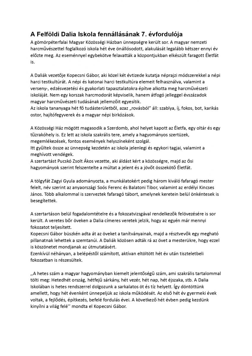 A Felföldi Dalia Iskola fennállásának 7. évfordulója