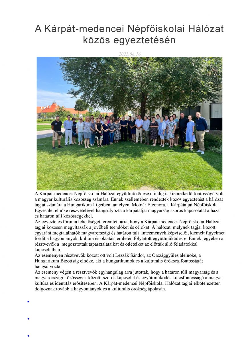 A Kárpát-medencei Népfőiskolai Hálózat közös egyeztetésén