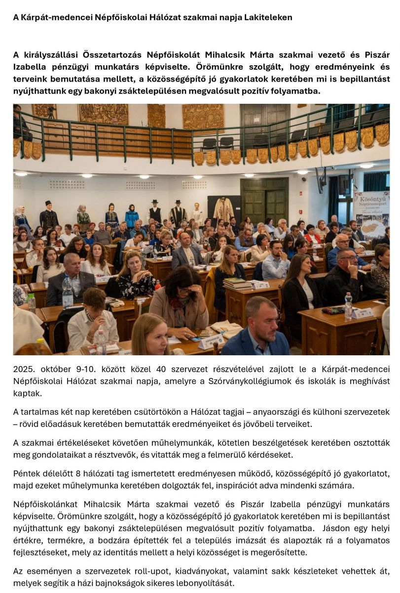 A Kárpát-medencei Népfőiskolai Hálózat szakmai napja Lakiteleken