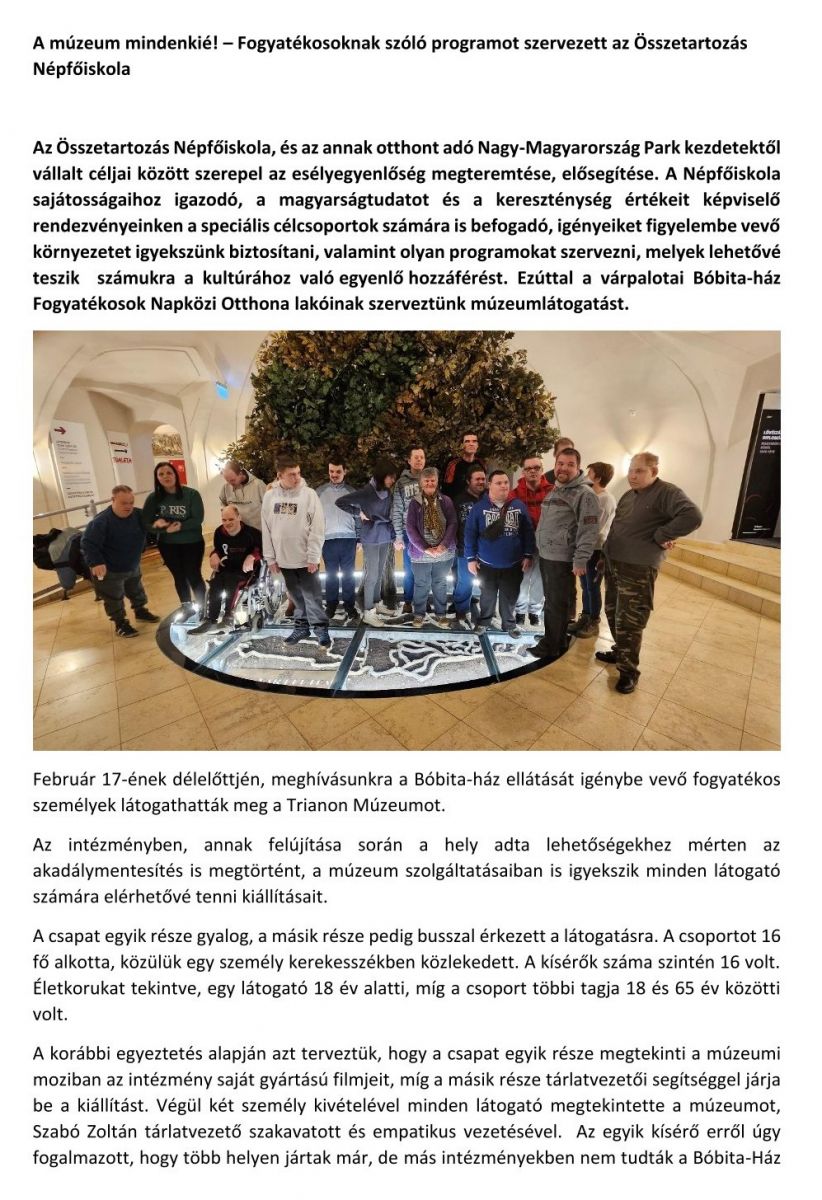 A múzeum mindenkié! – Fogyatékosoknak szóló programot szervezett az Összetartozás Népfőiskola