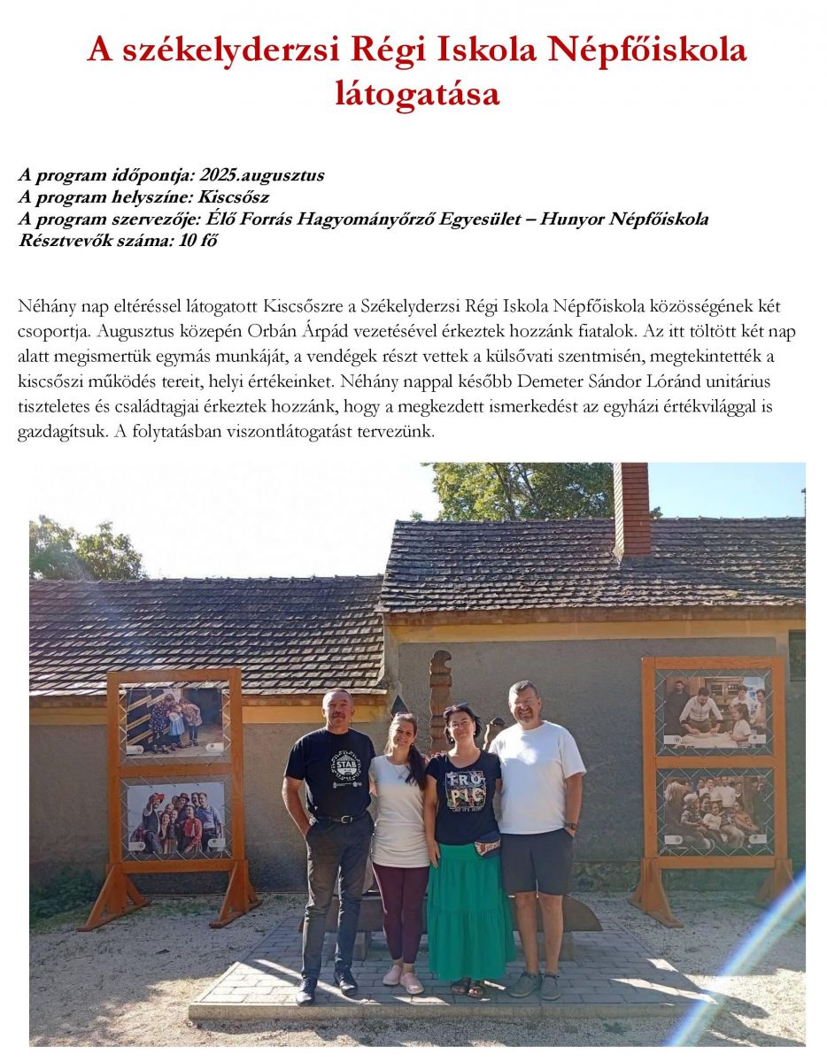 A székelyderzsi Régi Iskola Népfőiskola látogatása