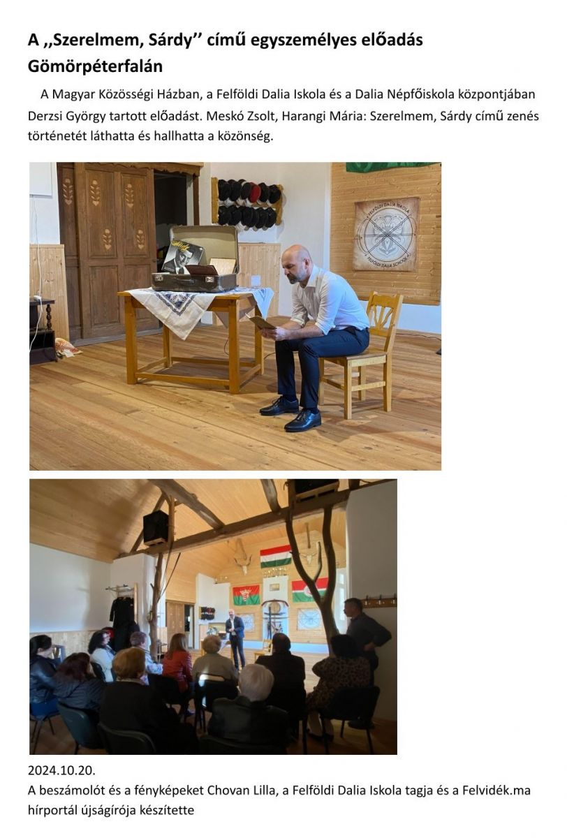 A ,,Szerelmem, Sárdy’’ című egyszemélyes előadás Gömörpéterfalán