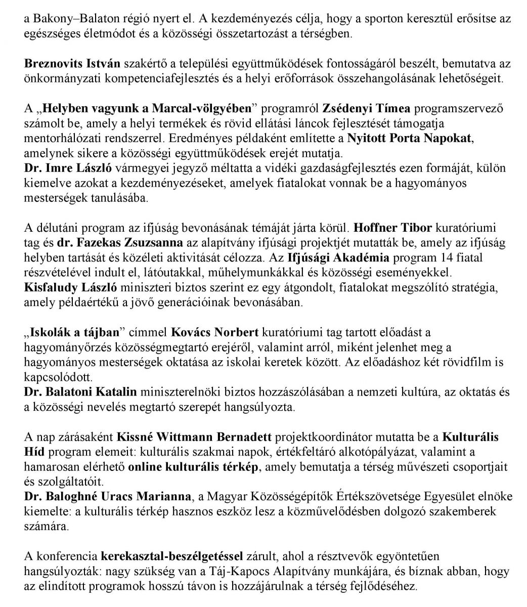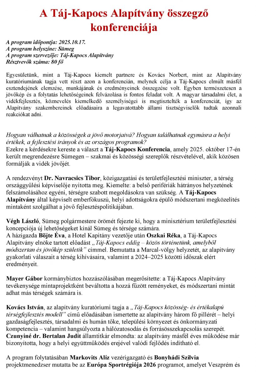 A Táj-Kapocs Alapítvány összegző konferenciája