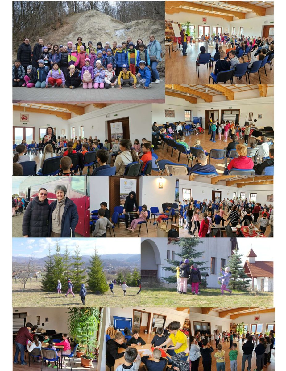 A szórványkollégium 31 kisdiákja és 6 pedagógusa látogatott el a Kodály Zoltán Népfőiskolára a „zöld héten”, ahol gazdag programot szerveztünk számukra. Az első találkozás a népfőiskolás kóruselőképző csoport tagjaival történt, a kicsi alsósokkal. A közös éneklésben, kölcsönös népdaltanításban, énekes játékokban közel 60 kisgyerek vett részt lelkesen, Lokodi Emőke vezetésével. A nagy süteményevést közösségi játékok követték a jó levegőn, Renáta nővér irányításával. Az estébe nyúló, véget érni nem akaró kézműves foglalkozás, a körmönfonás vezetője Fábián Gabriella volt.