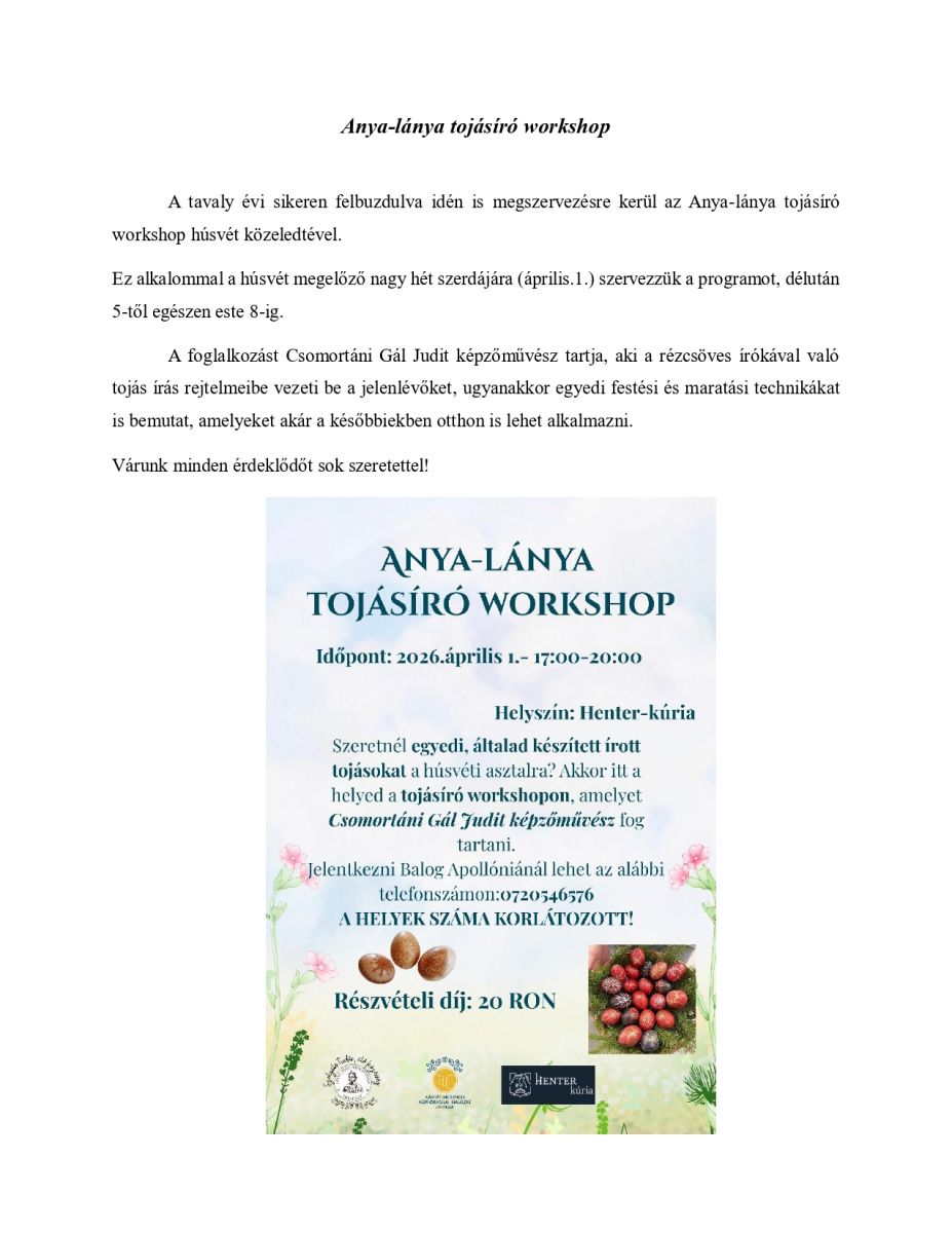 Anya-lánya tojásíró workshop 2026.