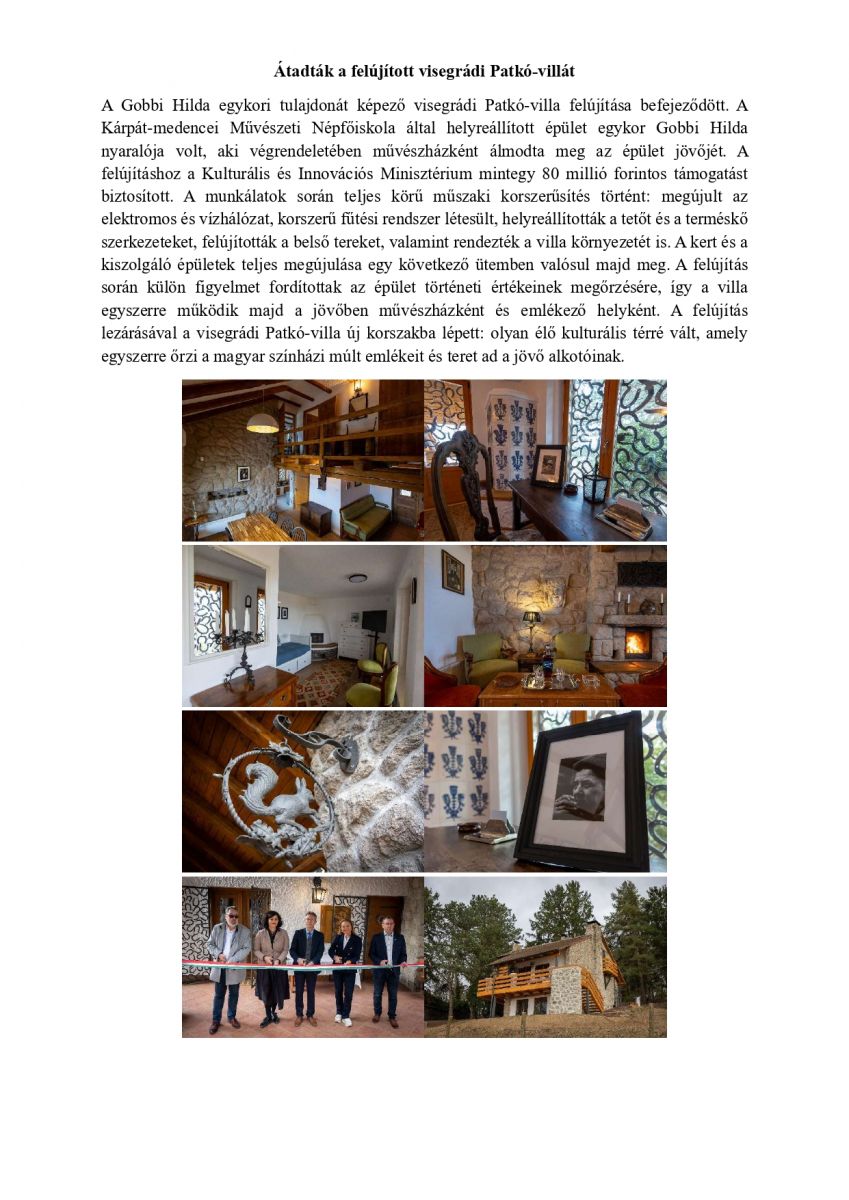 Átadták a felújított visegrádi Patkó-villát