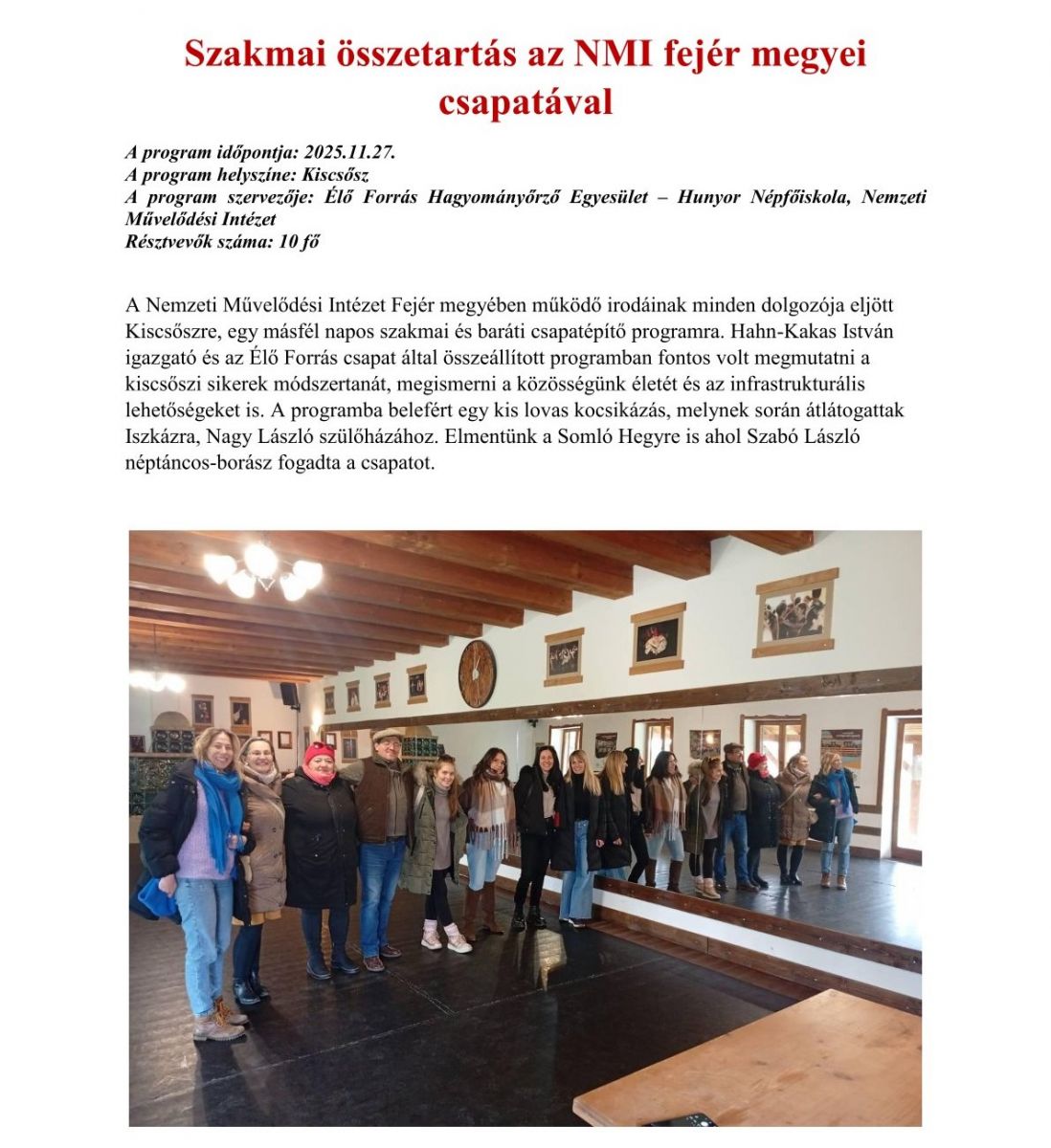 Az NMI Fejér Megyei Igazgatóságának szakmai látóútja